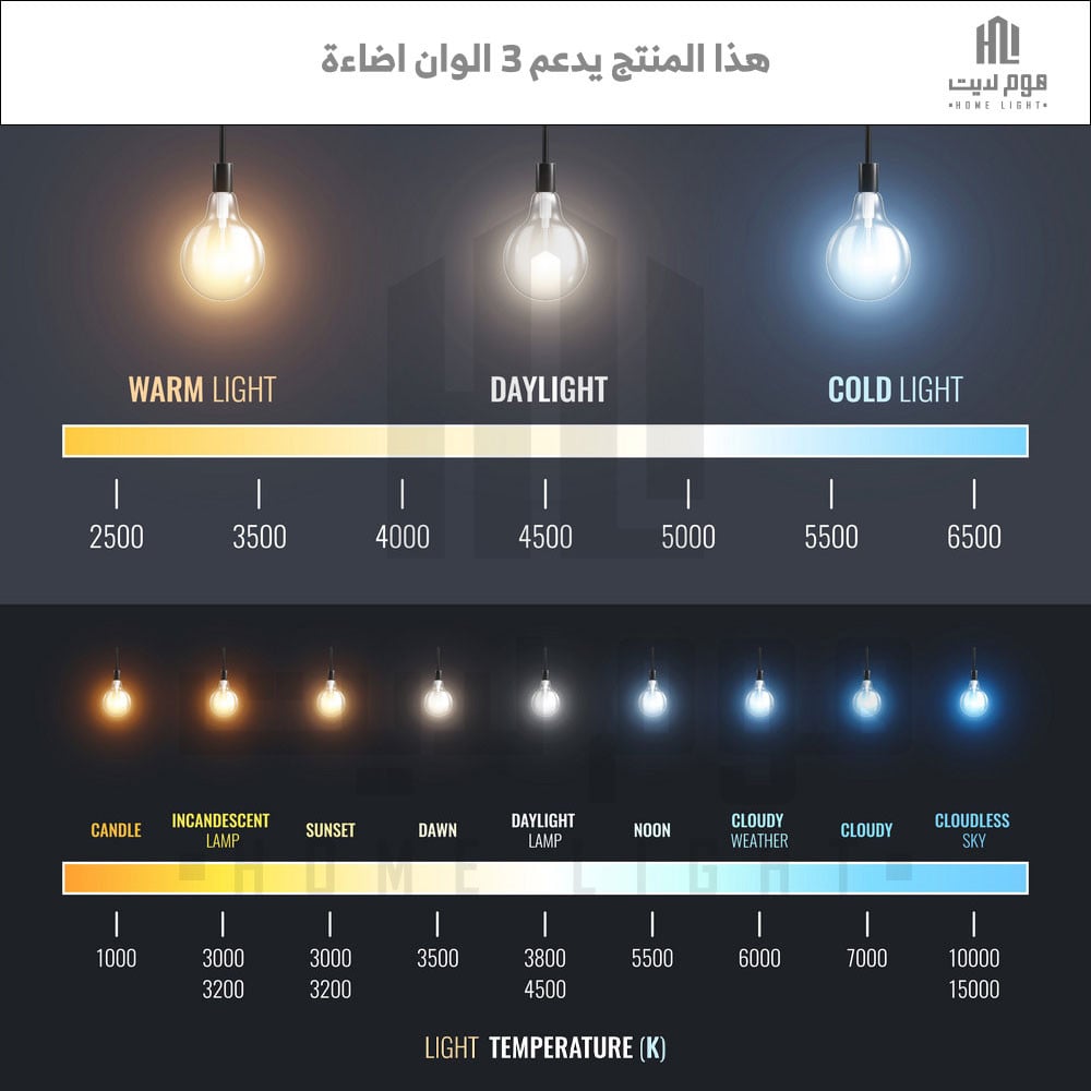 - لون الإضاءة : اصفر - شمسي - ابيض