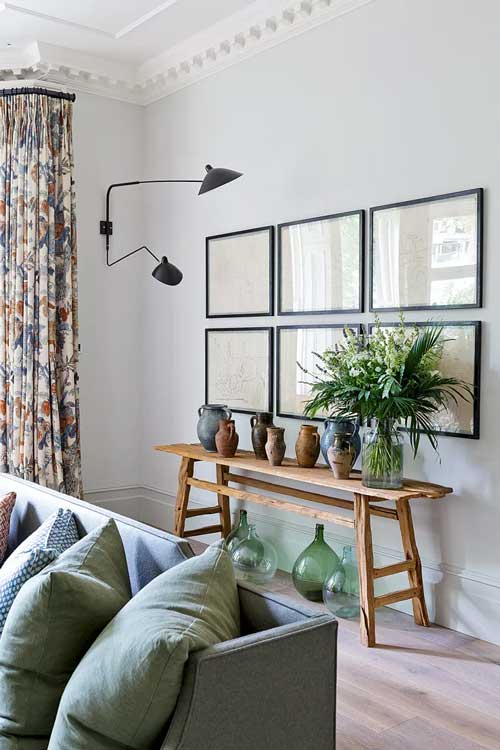 ان جعل المقاييس متناسبة يعد مبدأ رئيسيًا في التصميم الداخلي - لكن عندما تريد اختيار إضاءة غرفة الجلوس ، حاول مزج هذه المقاييس. مصباح الطاولة هذا يعطي نوعا من التغيير غير المتوقع للمقاييس، ويدخل نوعا من المرح للغرفة. كما أنه يلفت النظر نحو الأريكة الموضوعة بطرف الغرفة.