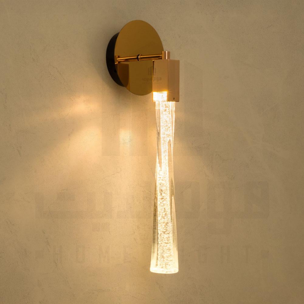 ابليك مودرن ليدكريستال بتأثير الفقاعاتاللون : ذهبيلون اضاءة اصفر 3000 كلفنالجهد الكهربائي : 220 فولتضمان سنتينمقاسات المنتج :الطول كامل : 43 سمطول الكريستالة : 30 سمالقاعدة : 13 سم