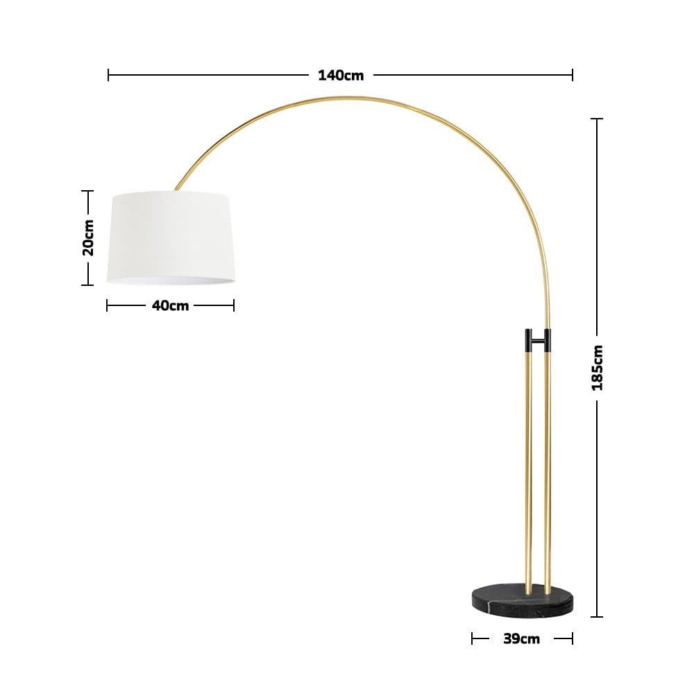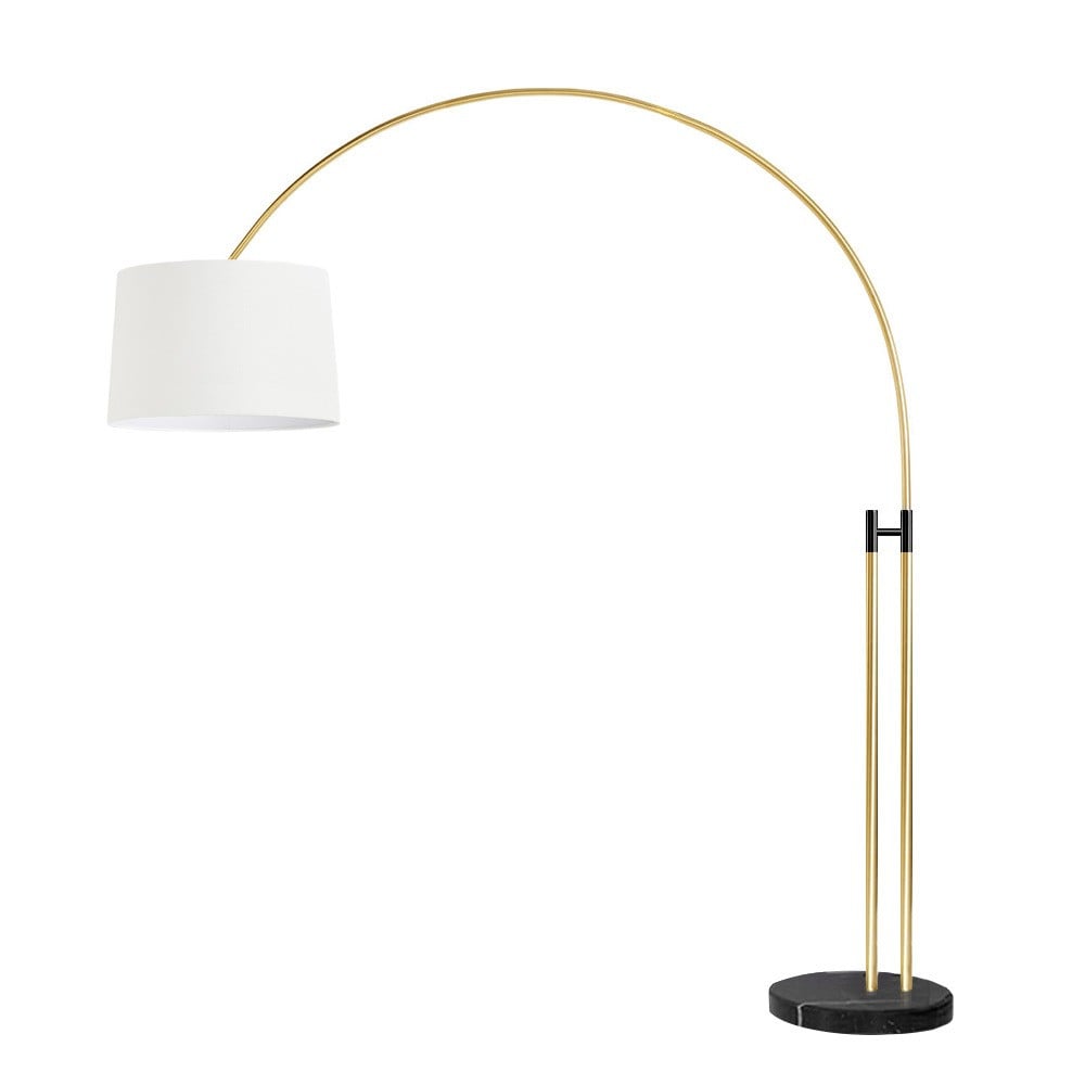 ابجورة ارضية منحنية مودرن اللون : ذهبي و اسود قاعدة لمبة E27 عدد 1 خامة المنتج : معدن و رخام قاعدة الابجورة رخام طبيعي اسود مظلة الابجورة دائرية لون ابيض الجهد الكهربائي : 220 فولت