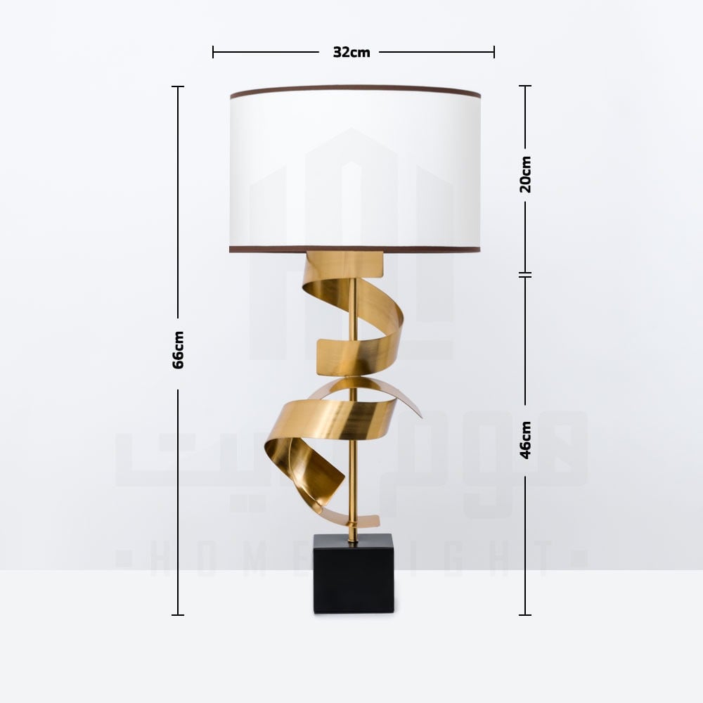 ابجورة طاولة مودرن اللون : ذهبي مطفي لون القاعدة : اسود لون المظلة اوف وايت قاعدة لمبة : E27 عدد 1 الجهد الكهربائي : 220 فولت